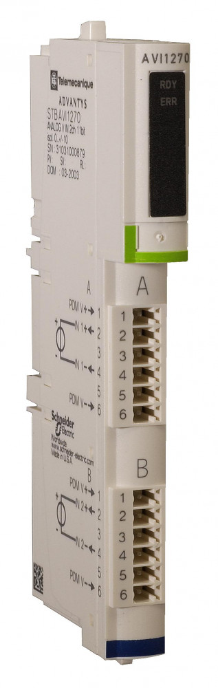 [description] => <p>МОДУЛЬ АН. ВХ, 2 КАН -10.+10В (KОМПЛ). <br />серия продукта: Modicon STB решение по распределенным входам/выходам <br /> - тип устройства или его аксессуаров: стандартный комплект аналогового входа <br /> - состав комплекта: монтажное основание STBXBA1000, модуль STBAVI1270, STBXTS1100, 6-контактный блок винтовых зажимов, STBXTS2100, 6-контактный блок пружинных зажимов <br /> - разрешение аналогового входа: 11 бит + знак. <br />Преимущества: Открытая система распределенного сбора данных для интеграции с устройствами. Решения Advantys для распределенного сбора данных отличаются простотой, открытостью и гибкостью, отвечая требованиям каждого этапа жизненного цикла изделия. Они экономят ваше время и деньги, упрощают задачи технического обслуживания и диагностики. <br />Применения: Упаковка, бутилирование, сборка, распределение, производство тканей, печать, производство полупроводников.</p>